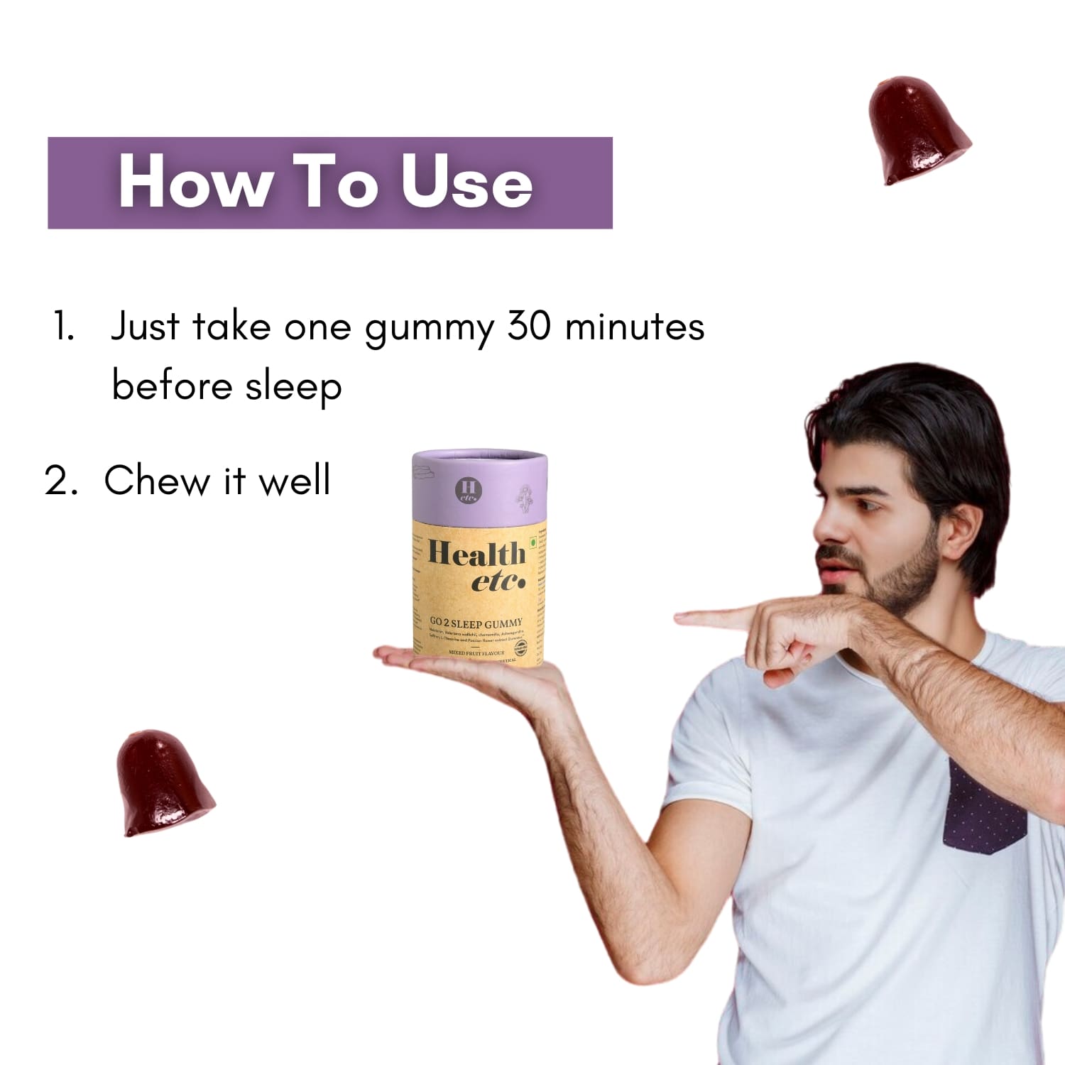 - Take 1 gummy daily, 30 minutes before sleep