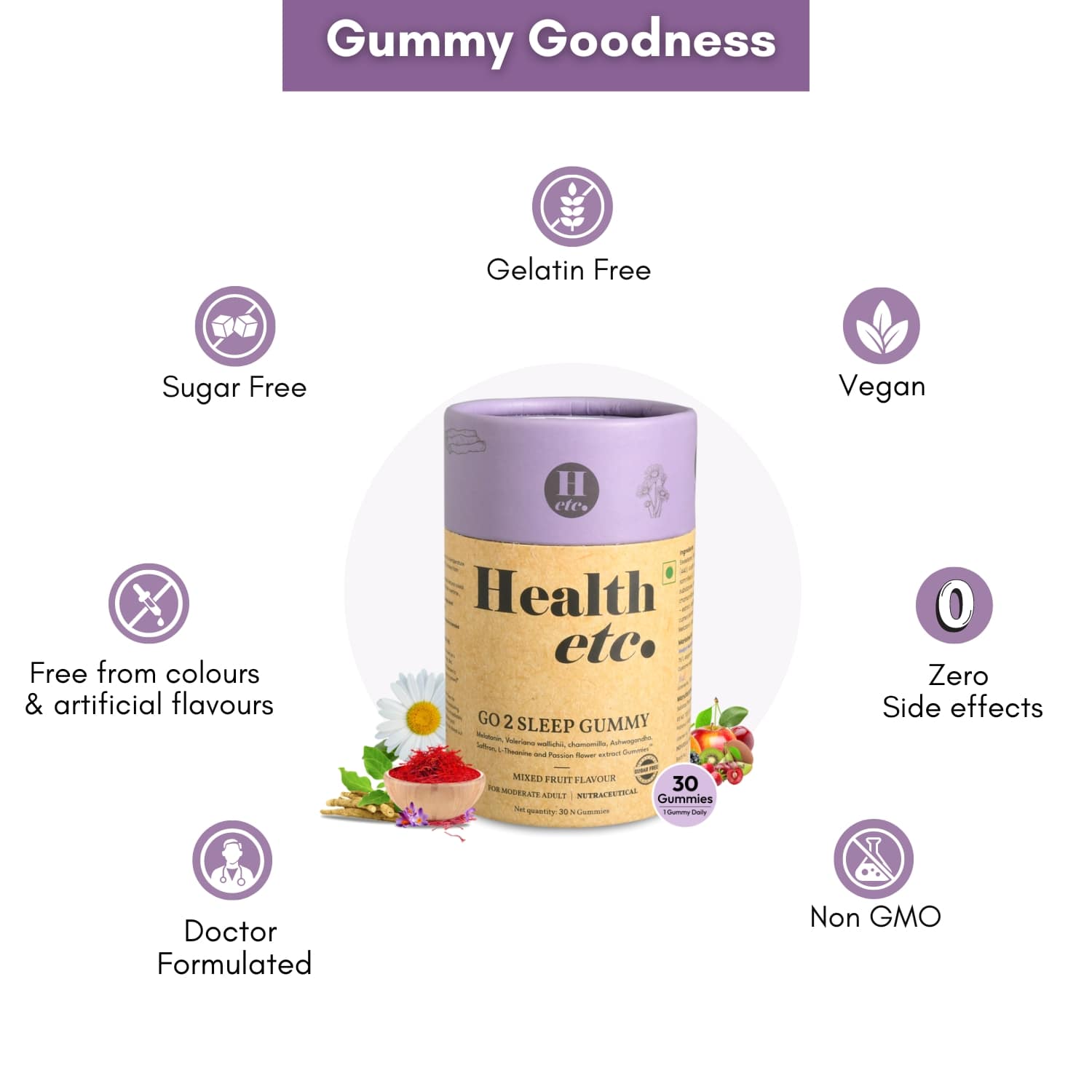 Natural sleep gummy with melatonin and carefully selected ingredients by an expert team of doctors, this Health etc.Go 2 Sleep Gummy provides a comforting bedtime ritual for a truly satisfying night’s rest. Melatonin Sleep Gummies are formulated to promote better sleep quality and help you wake up feeling refreshed. Give sugar-free sleep gummies a try and experience the difference for yourself.