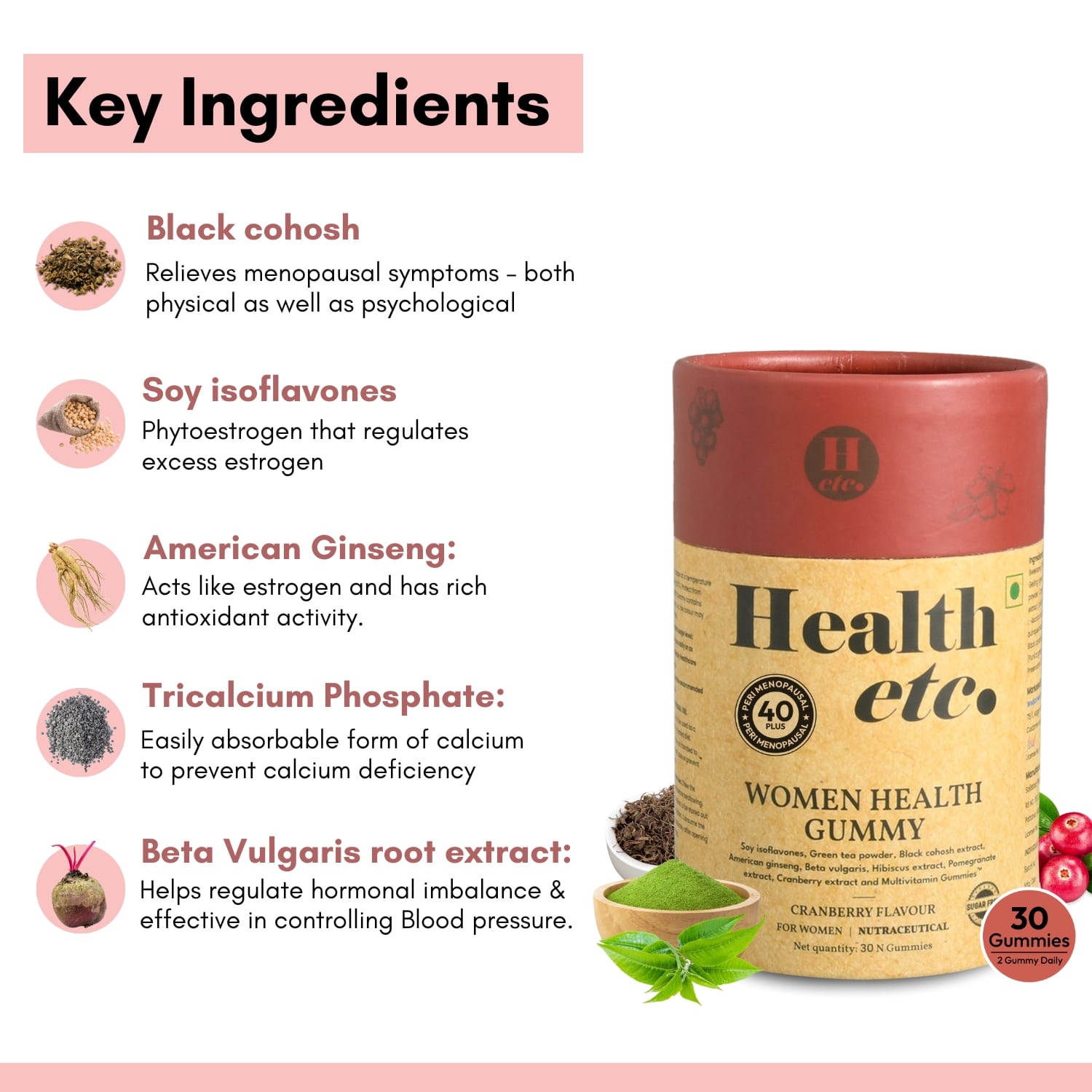 - Beta Vulgaris – Helps regulate hormonal imbalances and supports healthy blood pressure levels.